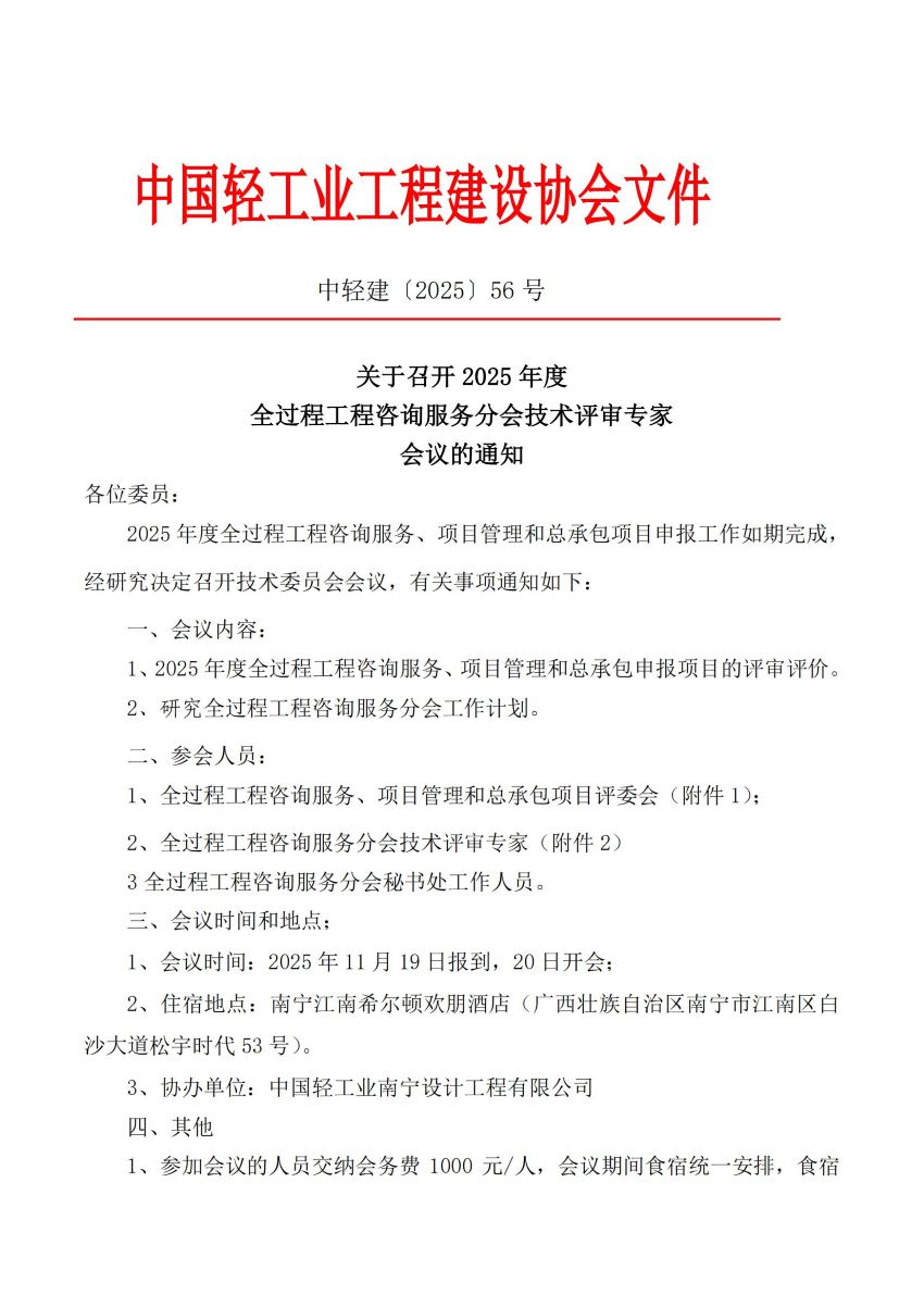 关于召开2025年度 全过程工程咨询服务分会技术评审专家 会议的通知
