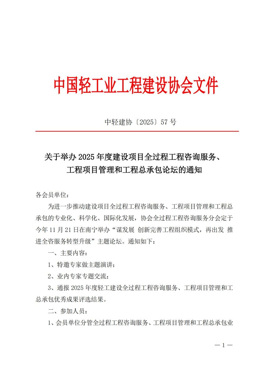 关于举办2025年度建设项目全过程工程咨询服务、 工程项目管理和工程总承包论坛的通知